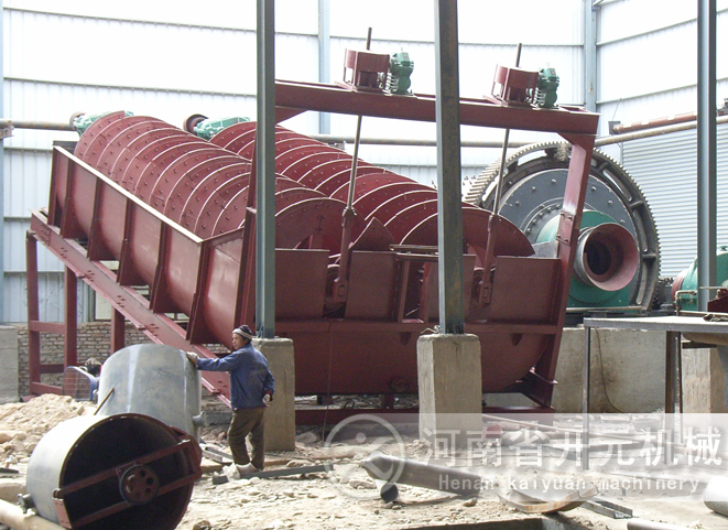 螺旋分級機系列一般做為球磨機的下一道工序。我公司生產的螺旋分級機系列主要有高堰式單螺旋和雙螺旋、沉沒式單螺旋和雙螺旋四種分級機。